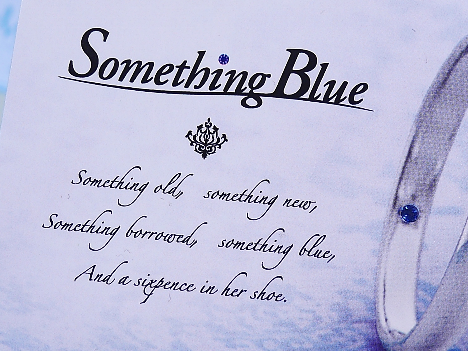 ヨーロッパに古くから語り継がれる花嫁が幸せになるためのおまじない〝サムシングフォー〟 のひとつ、花嫁の清らかさと誠実な愛情」という意味を持つ〝サムシングブルー〟。なにかひとつ青いものをさりげなく身に着けると幸せになれるという言い伝えに想いを込めて、リングの内側に青く澄んだブルーサファイアを留めています。