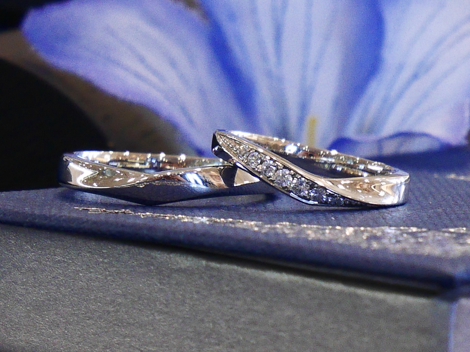 男性用のリングと女性用のリングを重ねあわせるとハートの形になる Something Blue 結婚指輪をご紹介します✧٩(ˊωˋ*)و✧